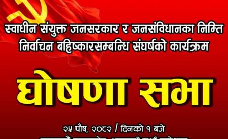 ५जनसंविधान र स्वाधीन संयुक्त जनसरकार बिना फागुन २१ को चुनाव अस्वीकार्य : केन्द्रीय संयुक्त संघर्ष समिति